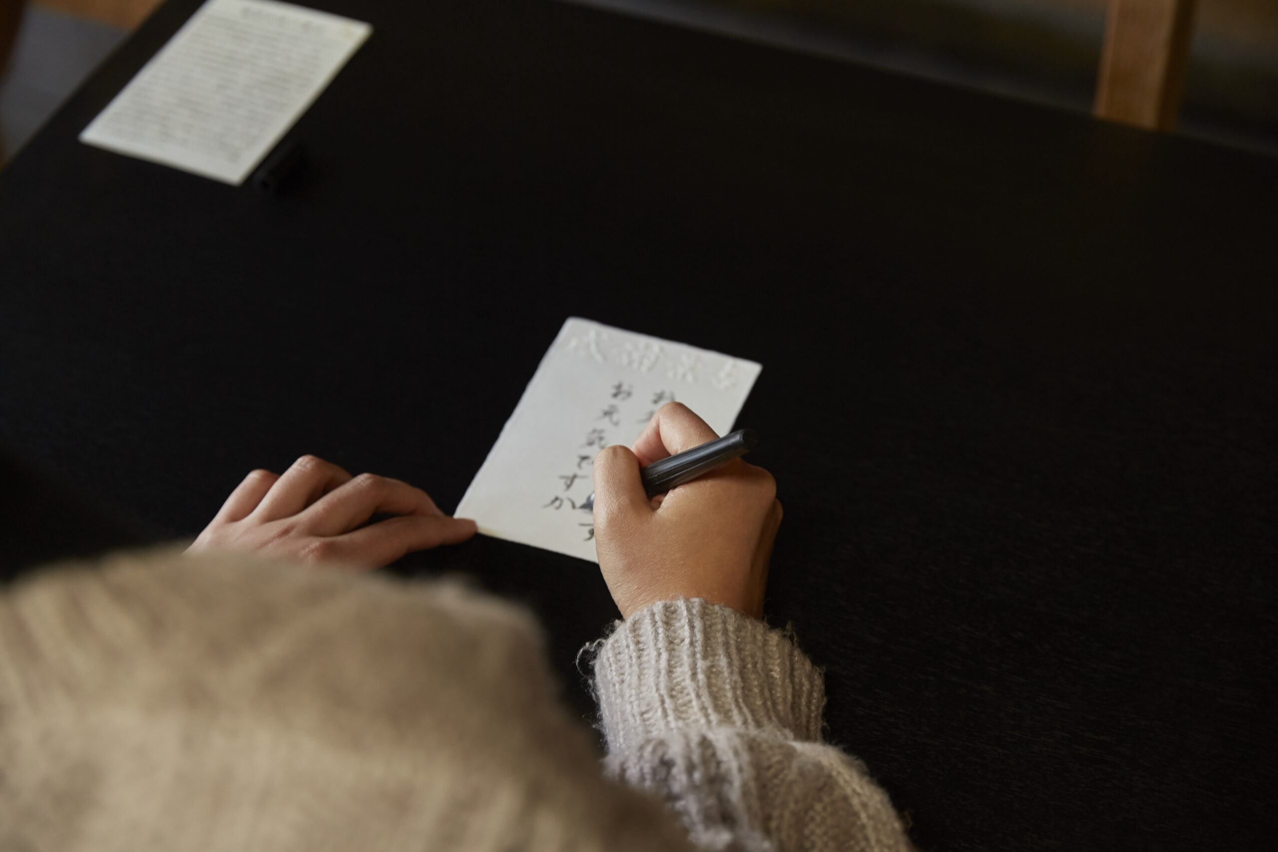 浄楽寺に眠る「郵便の父」こと前島密翁の「縁の下の力持ちになることを厭うな、人のために良かれと願う心を常に持てよ」という言葉に倣い、今まで縁の下の力持ちになっえ下さった方に感謝の思いを綴る体験。葉書は越前和紙で一枚一枚丁寧に漉かれた「感謝はがき」と刻印された一品です。書いたはがきは前島密の胸像ポストにそのまま投函できます。